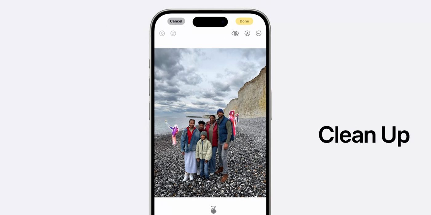 على سبيل المثال، إذا التقطت صورة لغروب الشمس على الشاطئ وتضمنت بعض النفايات التي تشوه المنظر، أو صورة عائلية مثالية يظهر فيها شخص غريب في الخلفية، يمكنك الآن إزالة هذه العناصر بسهولة باستخدام ميزة “Clean Up”. تهدف هذه الميزة إلى تسهيل تحرير الصور على هواتف آيفون دون الحاجة إلى تثبيت تطبيقات إضافية.